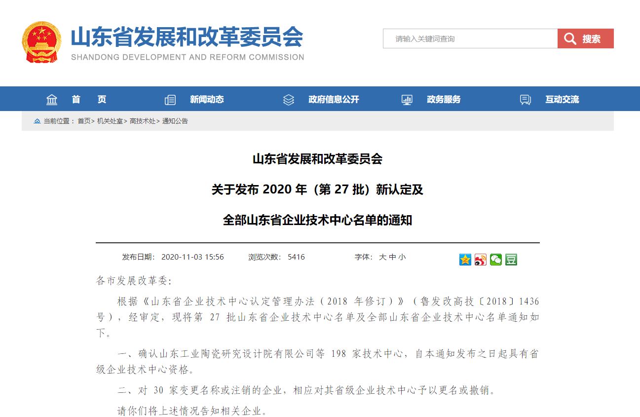 近日,山东省发展和改革委员会下发《关于发布2020年(第27批)新认定及全部山东省企业技术中心名单的通知》,山东路桥子公司公路桥梁、齐鲁建设技术中心同时通过评审,被正式公布为第27批省级企业技术中心。