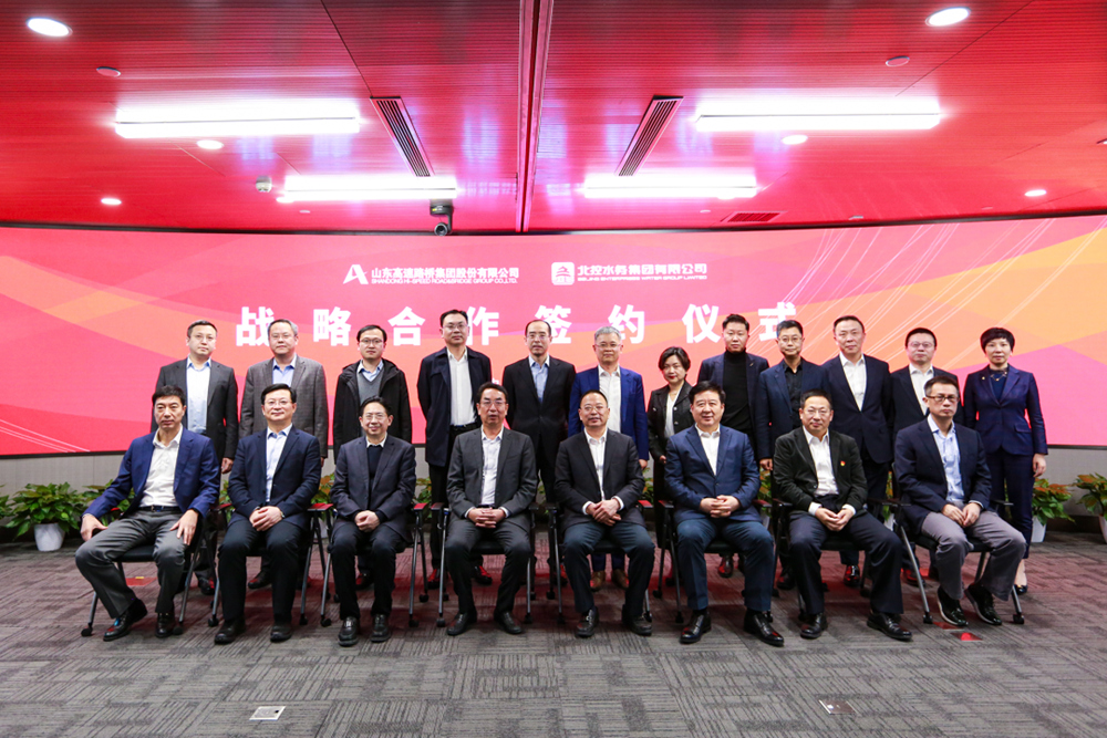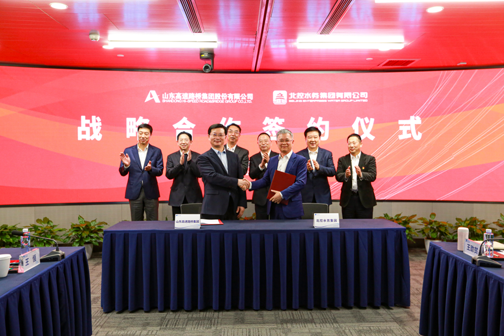 3月21日,公司与北控水务集团在京签署战略合作框架协议,双方将本着“资源共享、优势互补、强强联合、互惠互利”的原则,构建合作共赢、可持续发展的战略合作伙伴关系。山东高速集团总工程师、公司党委书记、董事长周新波与北控水务集团总裁周敏分别代表双方签约。山东高速集团党委书记、董事长周勇,党委常委、副总经理李航,执行总监、山高金融集团董事会主席王小东;北京控股集团党委书记、董事长田振清,党委常委、副董事长、常务副总经理、北控水务集团董事局主席李永成,党委常委、副总经理王剑,总经理助理、北京控股总裁熊斌等及北控水务集团执行总裁李力等执行机构领导出席签约仪式。